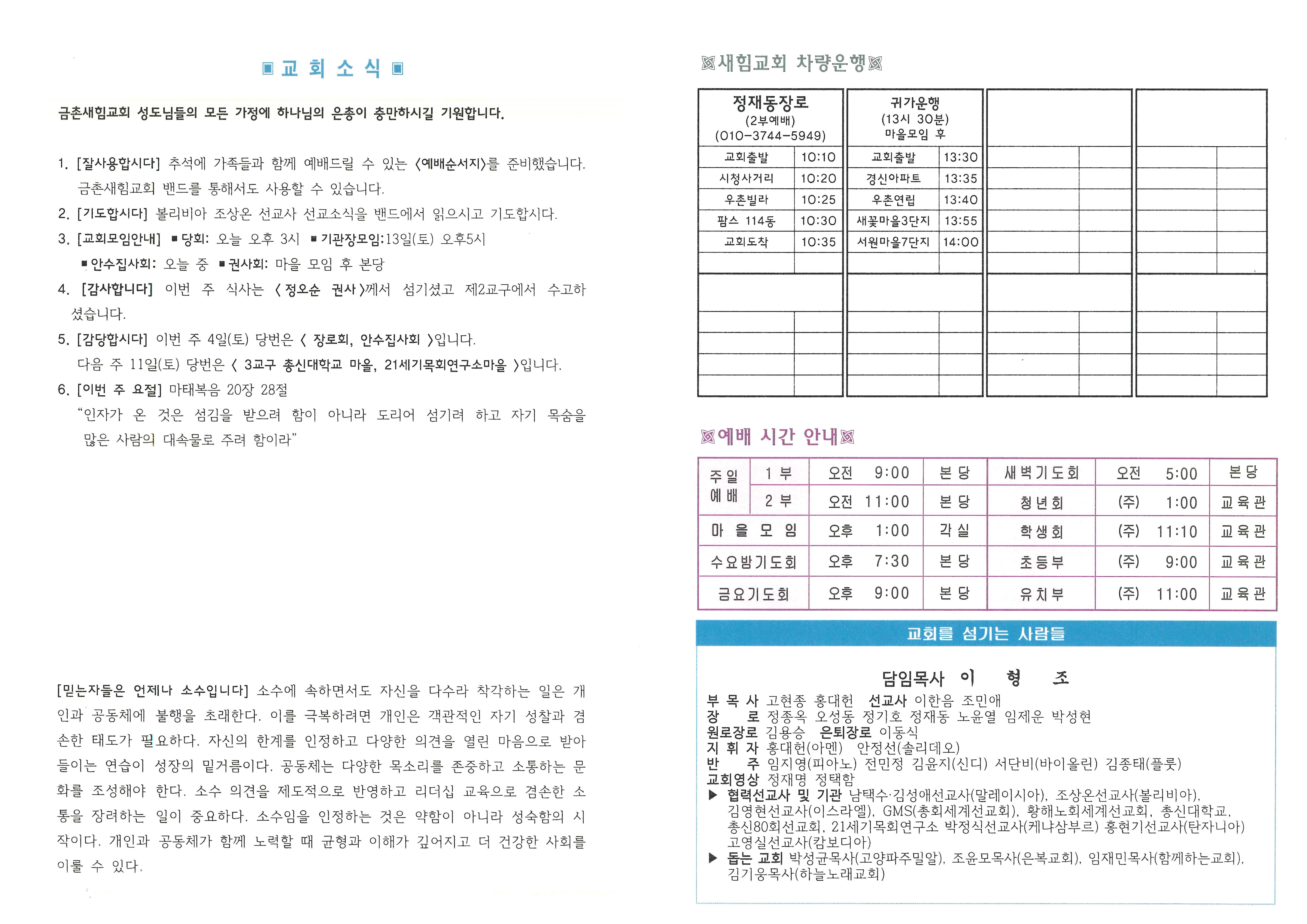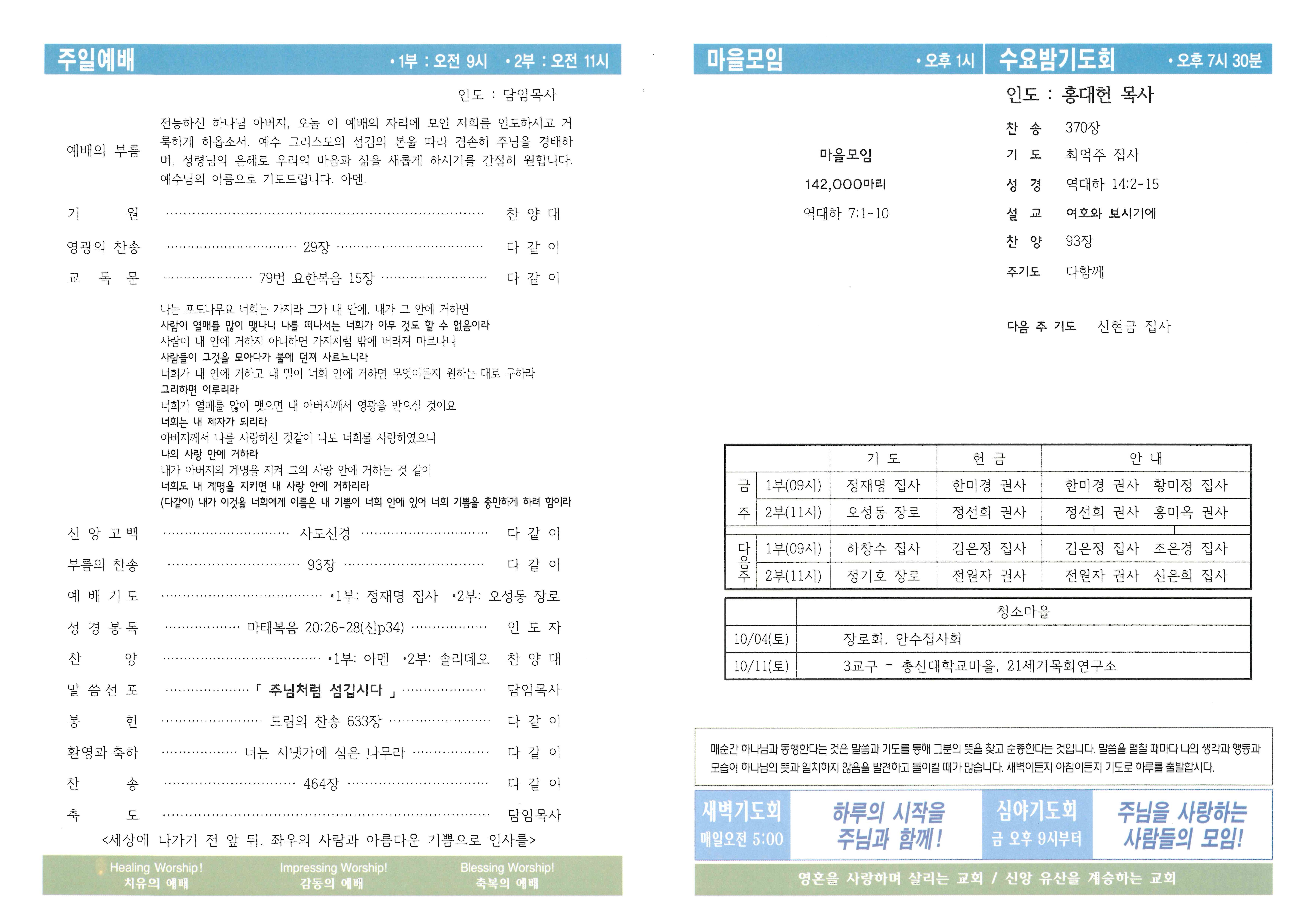 예배 및 모임안내